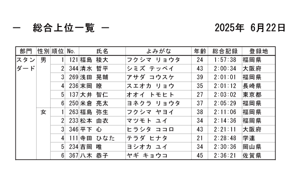 リザルトと完走証
